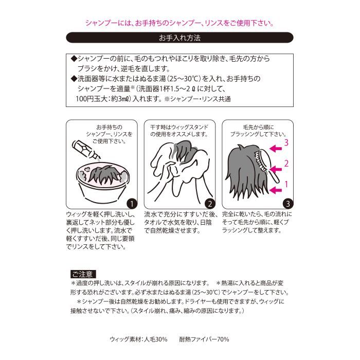 ・セット商品:フルウィッグ、ヘアネット 、取扱い説明書、スタイリングイメージ書